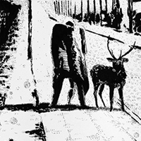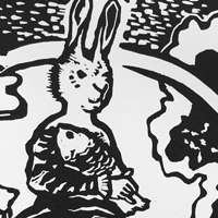 Während eines Aufenthaltes in den Studios International - Denkmalschmiede Höfgen entstand eine Mappe mit Graphiken zu einer Textsammlung von Kindern mit dem Titel „Die Schokolade ist so dunkel wie ein Wolf".