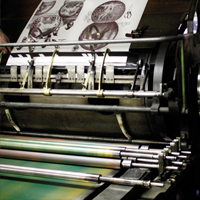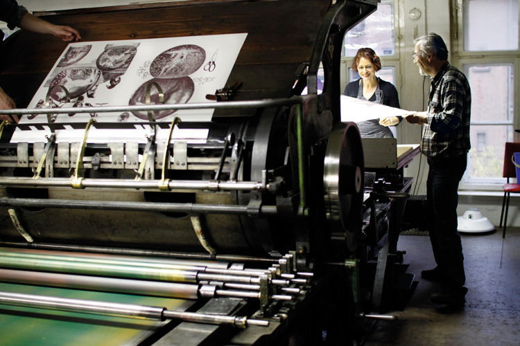 Der Lichtdruck ist eine der weltweit nur noch äußerst seltenen Drucktechniken. Die aufwändigen mehrfarbigen Druckgrafiken entstehen mittels beschichteter Glasplatten in kleineren Auflagen an historischen Maschinen.